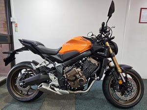 The CB650R is a beautiful, four-cylinder middleweight motorcycle. It’s got a smooth rush of turbine-like inline power, from low- to high-rpm. The opportunity to ride with the next-level performance advantage that shifting with Honda E-Clutch delivers. Aggressively redrawn styling, and premium technology, like new TFT screen and Honda RoadSync connectivity, that make this star shine even brighter.