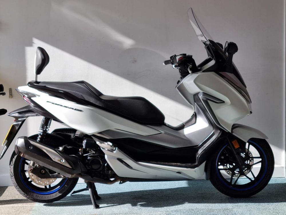 Honda did a fantastic update on thier luxury Maxi scooter the NSS300A Forza, Giving it and electrically adjustable screen , Traction Control and ABS along with a huge underseat storage area. The 300cc engine allows cruising at motorway speeds and higher! The bodywork allows wind free travel and weather protection while the comfy seat and multiple foot positions allow longer journeys to be completed in comfort. As part of our extensive preparation this bike has been serviced and had new Michelin tyres and genuine Honda headraces fitted. It has also had a recent drive belt change.